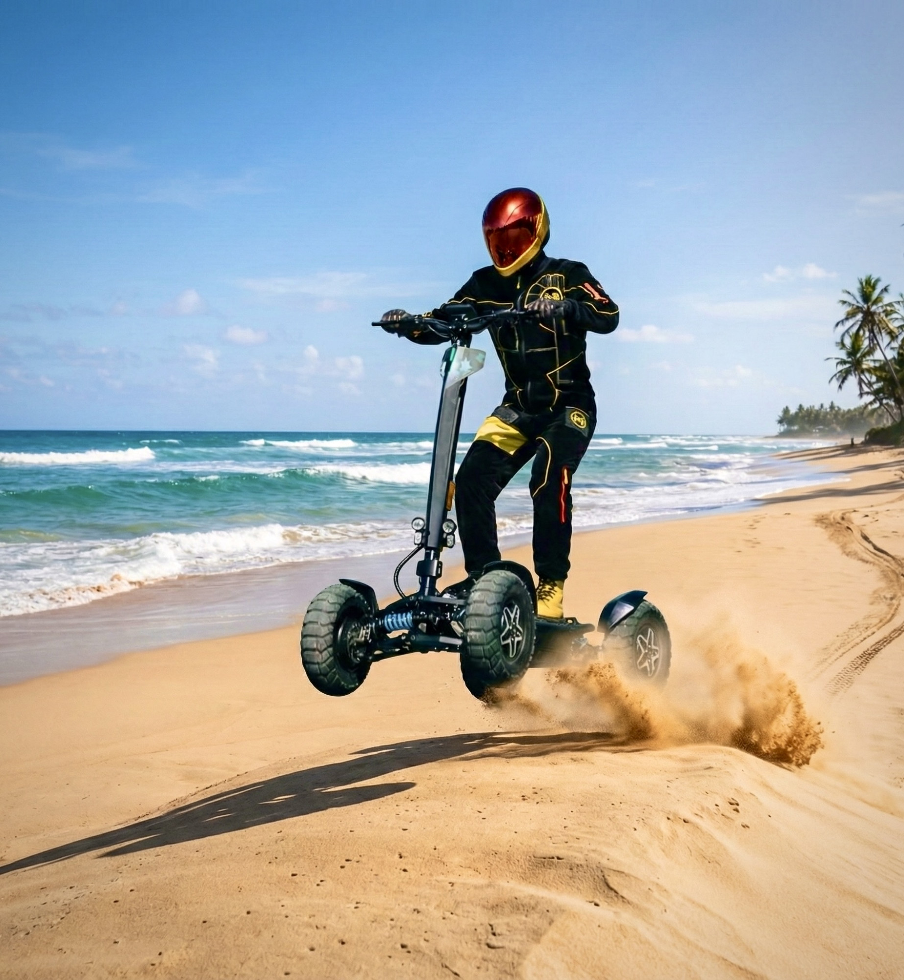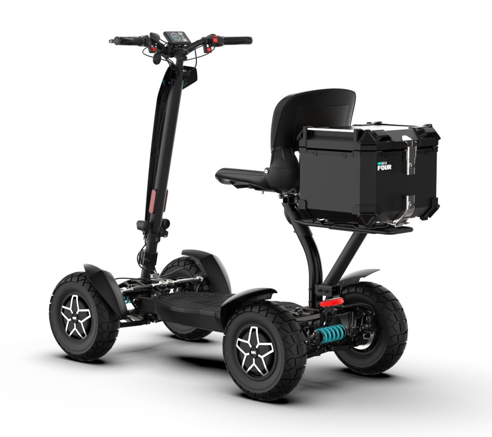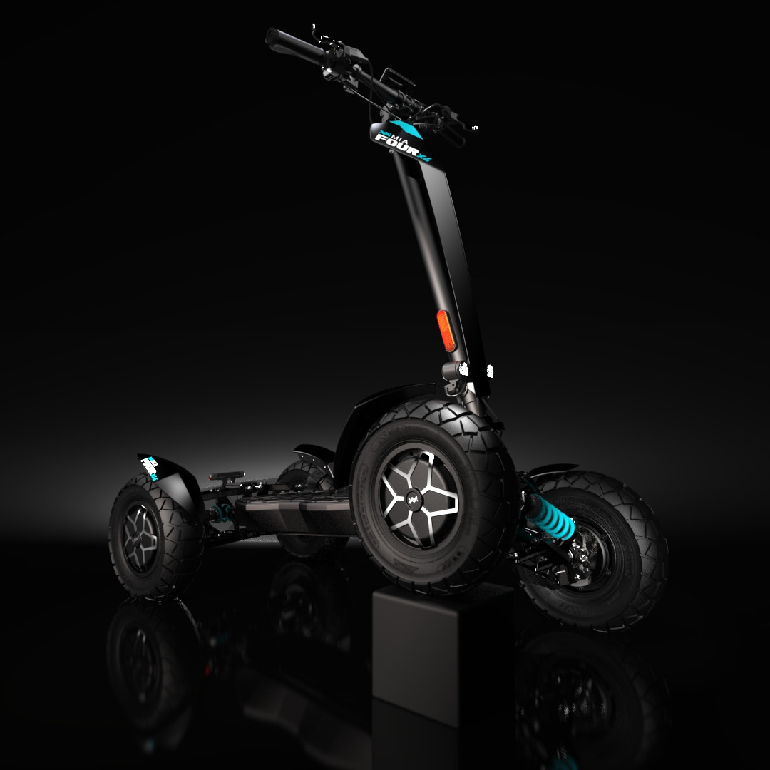 MIA Four X4 (4×4) – forradalmi elektromos roller összkerékhajtással, 7200 W teljesítménnyel, akár 120 km hatótávval és masszív 60 V / 35 Ah akkumulátorral. Megbízható, erős és bármilyen terepre készen áll.