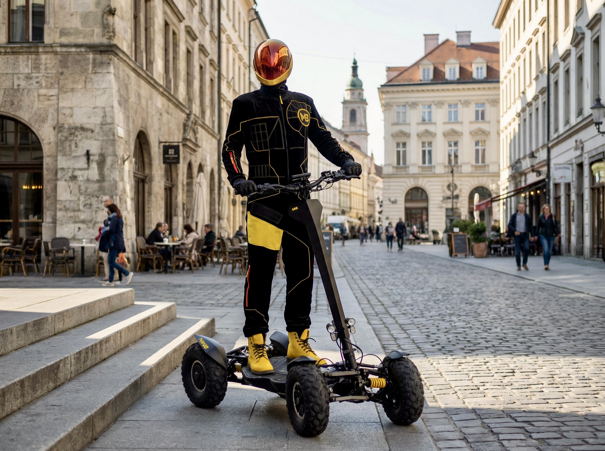 72 km/h sebesség és 7200 W teljesítmény mellett a biztonság elsődleges fontosságú. A MIA Four X4 ezért a mechanikai stabilitást elektronikus védelemmel ötvözi. A merev váz alacsony súlyponttal és széles állással csökkenti a felborulás kockázatát, míg a hidraulikus fékek és a független felfüggesztés biztosítják a kerekek folyamatos tapadását még erős fékezés közben is. A roller első és hátsó LED világítással, irányjelzőkkel és féklámpával van felszerelve, ami javítja a láthatóságot éjszakai közlekedéskor. Az elektronika védi az akkumulátort a túlmelegedéstől, túlmerüléstől és rövidzárlattól. A teljesítményszabályozó rendszer automatikusan korlátozza a gyorsulást, ha a szenzorok veszélyes dőlésszöget érzékelnek. A 14,5 hüvelykes abroncsok nagy tapadást biztosítanak, míg a 689 mm-es szélesség stabil vezetési pozíciót nyújt. A maximális 150 kg teherbírással a roller a legtöbb felnőtt számára kényelmesen használható. A biztonsági elemeket fényvisszaverő részek és automatikus hajtáslekapcsolás egészítik ki a fékkar meghúzásakor – ez alapvető követelmény a prémium elektromos járművek kategóriájában.
