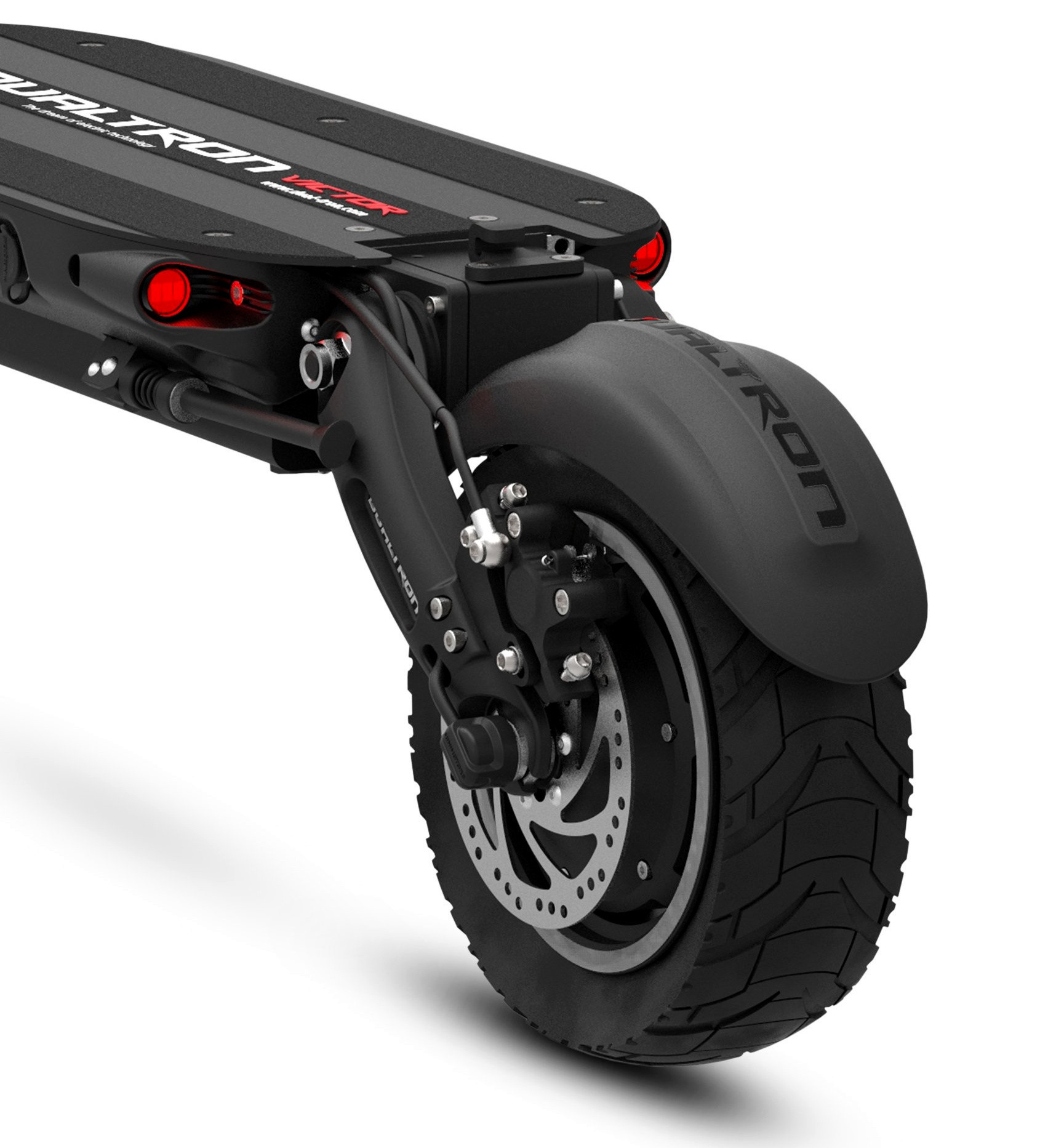 Szilárd felépítésének, tömörségének és nagy teljesítményének köszönhetően ez egy nagyon sokoldalú roller. Összkerék meghajtásának köszönhetően a Dualtron Victor megbirkózik a terepviszonyokkal és még a kifejezetten meredek emelkedőkkel is. Nem kell attól tartania, hogy rollere cserbenhagyja Önt egy hosszabb út során. A 10x3 méretű gumiabroncsokkal a Victor kényelmes menetet és kiváló tapadást biztosít szinte bármilyen felületen. Ezenkívül a leszerelhető felni sokkal könnyebbé teszi a belső tömlő javítását vagy az kerék cseréjét. Imádni fogja a kényelmes futóművet, amelyet mind macskakövön, mind földúton használhat. Nagy teljesítménye ellenére a roller súlya elfogadható, 32 kg, így nem okoz semmilyen nagyobb problémát, amikor cipeli vagy autóba rakja.