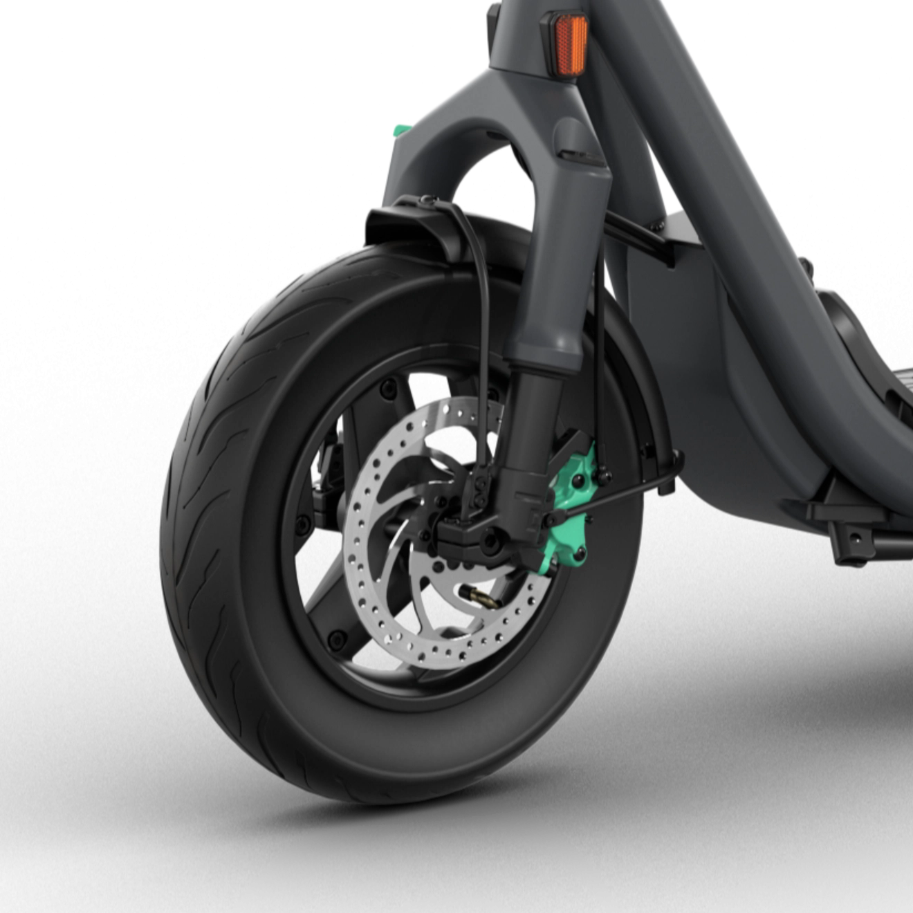Az Egret GT biztonsági szintje kiemelkedően magas. A maximális irányíthatóságról 160 mm-es tárcsákkal szerelt hidraulikus tárcsafékek gondoskodnak, amelyek stabil, pontos és azonnali fékezést nyújtanak. A 13"-os abroncsok kiváló tapadást és rövidebb fékutat biztosítanak. A világítás professzionális megoldás: 80 luxos OSRAM LED első lámpa, hátsó LED féklámpa funkcióval és integrált irányjelzők, amelyek jelentősen növelik a láthatóságot éjszaka és rossz időben is. A váz úgy lett kialakítva, hogy akár 150 kg terhelést is stabilan elbírjon. Az elektronikus biztonságot az NFC-s feloldás, a riasztó és az indításgátló biztosítja, amelyek minden parkolásnál védik a rollert. Az Apple Find My funkció folyamatos helymeghatározást tesz lehetővé, ami jelentősen csökkenti az eltulajdonítás kockázatát. Az IPX5 vízállóság esőben is lehetővé teszi a használatot, míg az IPX7 besorolású akkumulátor rövid idejű vízbe merítést is kibír. A 62 Nm nyomaték gyors és biztonságos gyorsítást garantál még nehezebb körülmények között is.