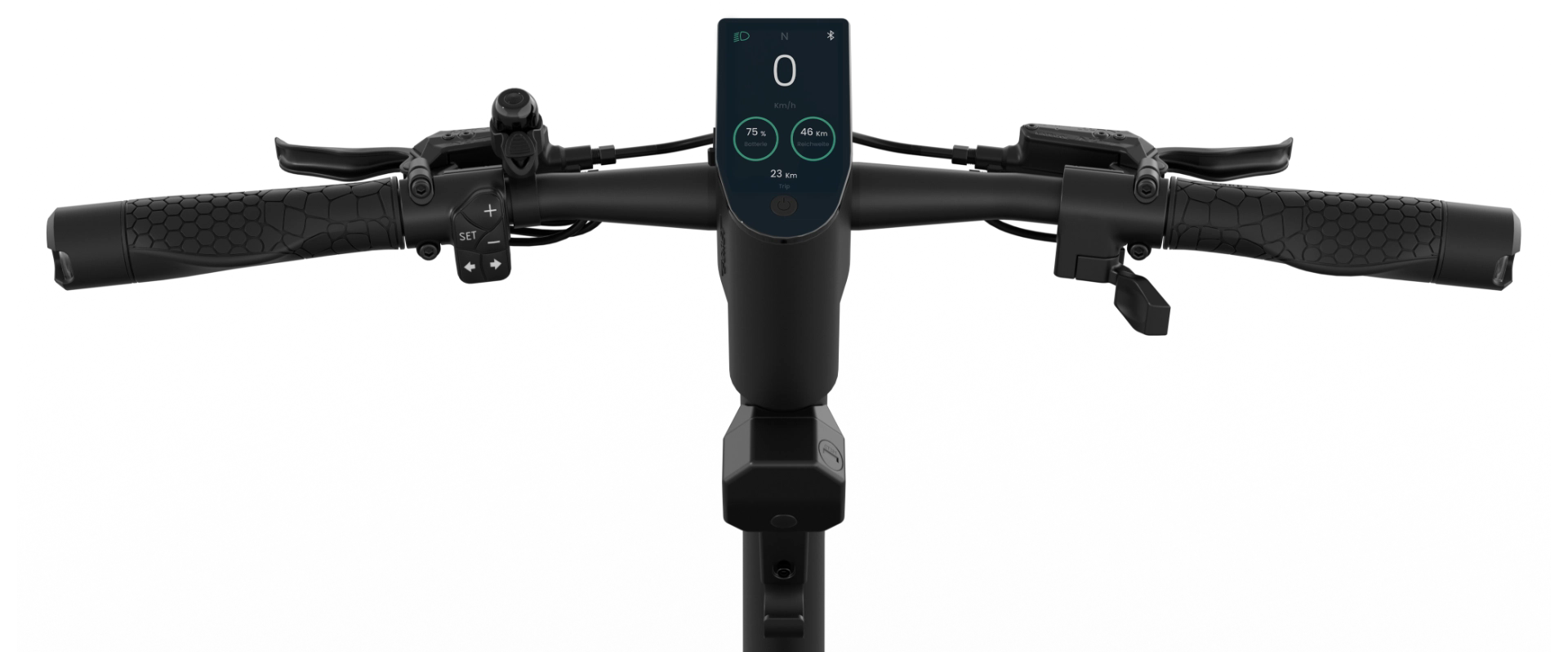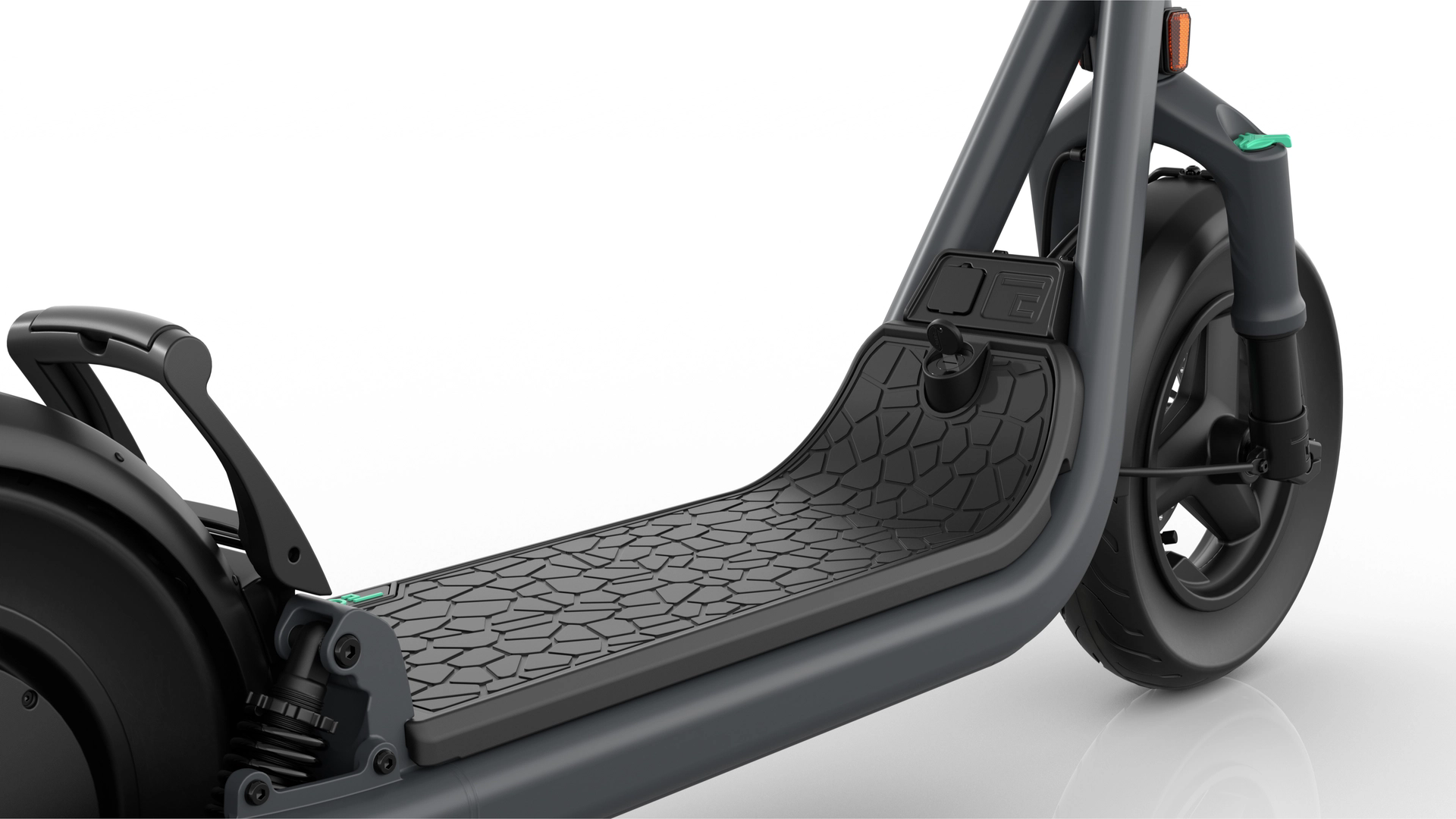 Az Egret GT robusztus, ugyanakkor modern formatervezésével tűnik ki. Kinyitott állapotban a méretei 136 × 67 × 128 cm, összecsukva pedig mindössze 136 × 60 cm, ami jelentősen megkönnyíti a kezelést és a tárolást. A fellépő nagyvonalú 17 × 46 cm mérete stabil állást biztosít, és egyben elrejti a gyorscserélhető akkumulátort, ami ennek a modellnek az egyik legpraktikusabb funkciója. A kettős felfüggesztés – elöl olajos, upside-down RST villa 5 cm rugóúttal és a hátul állítható lengéscsillapító – kényelmet nyújt még egyenetlen felületen is. A roller 13"-os abroncsokkal, acél defektvédelemmel van felszerelve, amelyek nagy sebességnél is fokozzák a stabilitást. A világítás prémium: OSRAM első LED 80 lux, hátsó LED féklámpa funkcióval, valamint integrált irányjelzők elöl és hátul. A kezelést egy 3,5"-os TFT kijelző egészíti ki, amely világosan mutatja a sebességet, az akkumulátor töltöttségét, a menetmódot vagy az irányjelzőket. Hasznos funkció továbbá az NFC-s feloldás, az elektronikus riasztó, az indításgátló, valamint az Apple Find My kompatibilitás, ami jelentősen csökkenti a lopás kockázatát. A roller IPX5, az akkumulátor pedig IPX7 vízállósági besorolása a rendszer kiemelkedő ellenállóságát teszi teljessé.