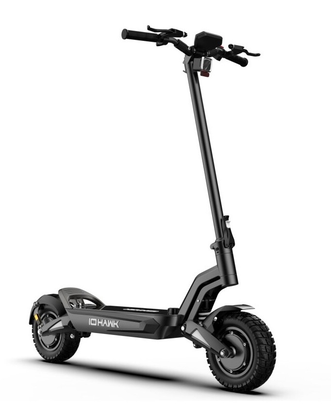Az IO HAWK Elite X a nagy teljesítményt hosszú hatótávval és kiváló minőségű felépítéssel ötvözi. Két motorja van, amelyek közvetlenül a kerékagyban helyezkednek el, és 2x1000 W teljesítményre képesek. A fogantyú elfordítása után 25 km/h-s sebességgel haladhat, ami városi környezetben bőven elegendő. A 48 V-os, 25 Ah kapacitású lítiumakkumulátor paraméterei az LG gyártó celláival nem maradnak el a roller egyéb jellemzői mellett. Mindössze 6 óra alatt teljesen feltöltheti az akkumulátort, amivel akár 100 km-es távolságot is megtehet. Alapfelszereltségként a rollerhez tartozik egy 4,5 Ah-s töltő. A gyártója szerint két erős motorjával az Elite X szinte bármilyen emelkedővel elbír. Még egy 25%-nál nagyobb dőlésszögű dombtól sem riad vissza.