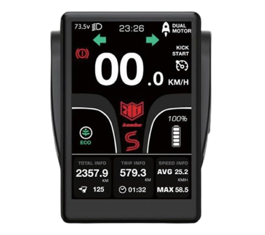 A KAABO Wolf King GTR dizájnja alapvetően a robusztusságra, stabilitásra és kényelemre épül. A roller speciálisan tervezett CST vákuumos, minden terepre alkalmas, 100-55-7 méretű, önjavító gumikat használ, amelyek jelentősen csökkentik a defekt kockázatát, és növelik a megbízhatóságot még nehéz körülmények között is. Elöl hidraulikus lengéscsillapítók, hátul pedig rugó-olaj rendszer 18 állítható beállítással biztosítja, hogy a vezetési tulajdonságokat pontosan az útburkolathoz és a vezető preferenciáihoz lehessen igazítani. Az irányításhoz egy áttekinthető TFT kijelző áll rendelkezésre intuitív felülettel, amely mutatja a sebességet, hatótávot, akkumulátor állapotát és a vezetési módokat. A Wolf King GTR intelligens funkciókat is kínál – 2 az 1-ben FOC vezérlő a pontosabb reakció és hatékonyabb hűtés érdekében, valamint több vezetési mód: Sport a maximális teljesítményhez, ESP a stabilitás növeléséhez, Pedestrian lassú mozgáshoz gyalogos övezetben, Anti-theft lopás elleni védelemhez és Auto Memory, amely megjegyzi az utolsó beállításokat. Az akkumulátor 7 nap inaktivitás után automatikus alvó üzemmóddal rendelkezik, ami energiát takarít meg és növeli az élettartamot.