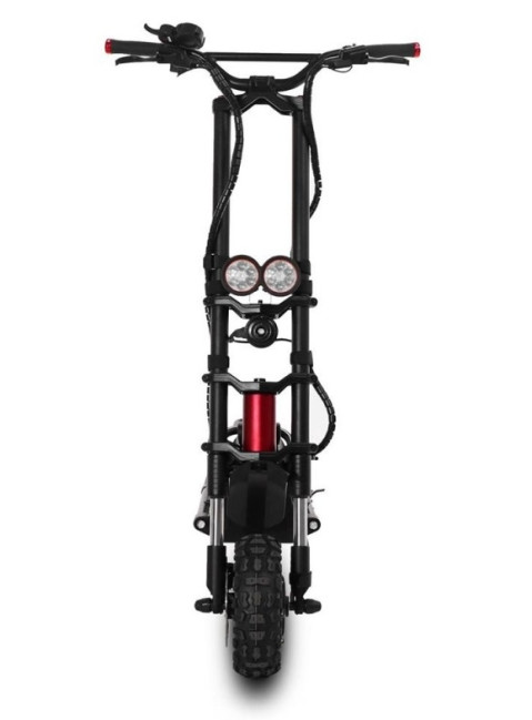 A KAABO Wolf Warrior 11 Plus egy kiváló elektromos roller, amely egyesíti az erőteljes dupla motort (egyenként 1200 W) az akár 90 km-es hatótávval és a robusztus kialakítással. Nagy terepgumikkal, hidraulikus elülső lengéscsillapítókkal és LED lámpákkal felszerelt, ideális az igényes vezetők számára városban és terepen egyaránt. A dupla hidraulikus tárcsafékeknek és a kiváló minőségű világításnak köszönhetően maximális biztonságot nyújt.