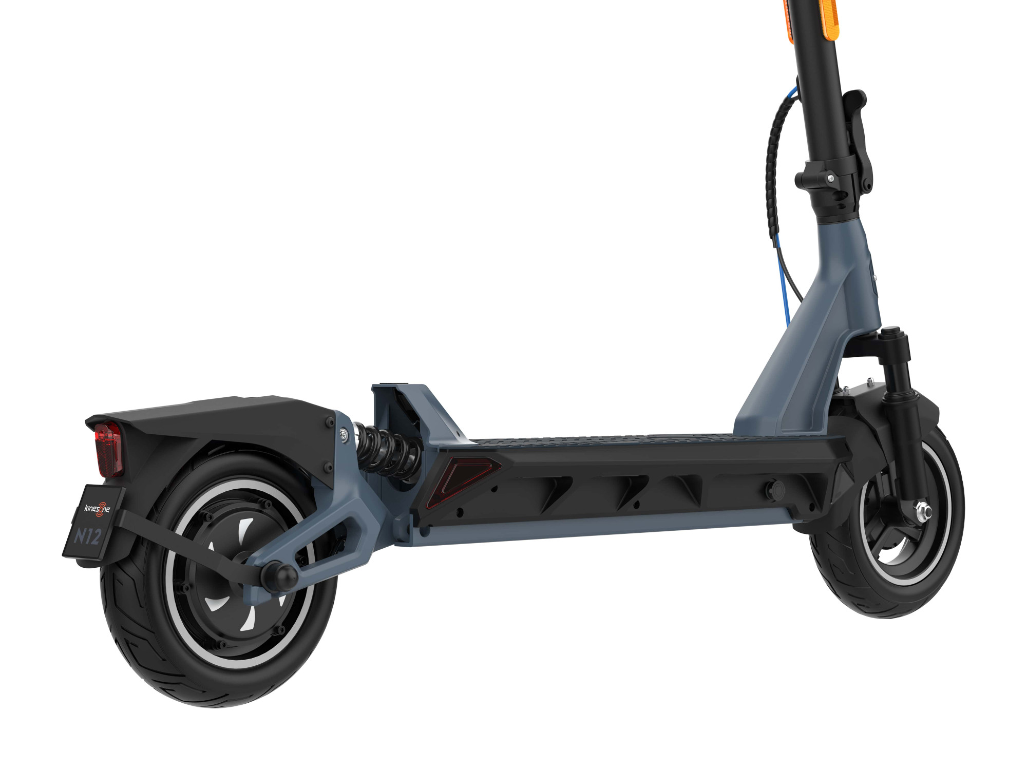 Amint kiveszi a Kingsong N12-t a dobozból, egyértelmű válik, hogy ez egy fajtiszta városi gép. Az elegáns és funkcionális, repülőgép-minőségű alumíniumból készült váz megjelenése minimalista, de mindent tartalmaz, ami a vezetéshez kell. Mindig jó, ha van elég hely a lábaknak, amit gumírozott futófelülete biztosít. Vezetés közben nem csúszik le róla a lába, és a karbantartása is könnyebb. A hátsó megemelt rész, amely egyben fogantyúként is szolgál a kényelmesebb hordozáshoz, még biztonságosabb testtartást tesz lehetővé. A kormányrúd és a lábtartó közötti tér a masszív nyakhoz tartozik, amelyhez rásimulva csatlakozik egy egyszerű, de erős összehajtó csukló. Mindössze az egyik kart kell kioldania, és a teljes kormányrudat leengedheti a megemelt reteszhez.