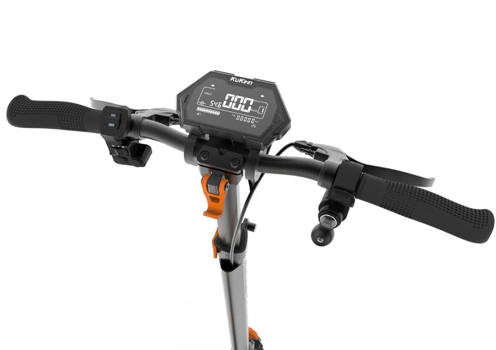 A KuKirin G2 Max az első pillantásra modern sportos dizájnjával tűnik ki, amely ötvözi a robusztus felépítést az elegáns vonalakkal. A minőségi vázának köszönhetően a roller nemcsak esztétikailag vonzó, hanem rendkívül ellenálló a mindennapi használat során is. A kinyitott állapotban a méretei 1260 × 605 × 1300 mm, míg összecsukott állapotban 1260 × 605 × 580 mm, ami megkönnyíti a tárolást és a szállítást. Körülbelül 31 kg súlya biztosítja az erőt és stabilitást, ugyanakkor egyszerű kezelhetőséget tesz lehetővé. A kényelmes utazást egy négykaros lengéscsillapító rendszer és a 10 hüvelykes terepgumik biztosítják, amelyek kopás- és ütésállóak. A KuKirin G2 Max levehető üléssel rendelkezik, ami extra kényelmet biztosít hosszabb utak során. A hatpontos világítási rendszer magában foglalja a erős első lámpát, oldalsó világítást, hátsó és féklámpákat, így nappal és éjszaka is tökéletesen látható marad. A praktikus intelligens kijelző a sebességet, az akkumulátor állapotát mutatja, és egyszerű vezérlést biztosít a lámpákhoz, indexekhez és kürthöz.