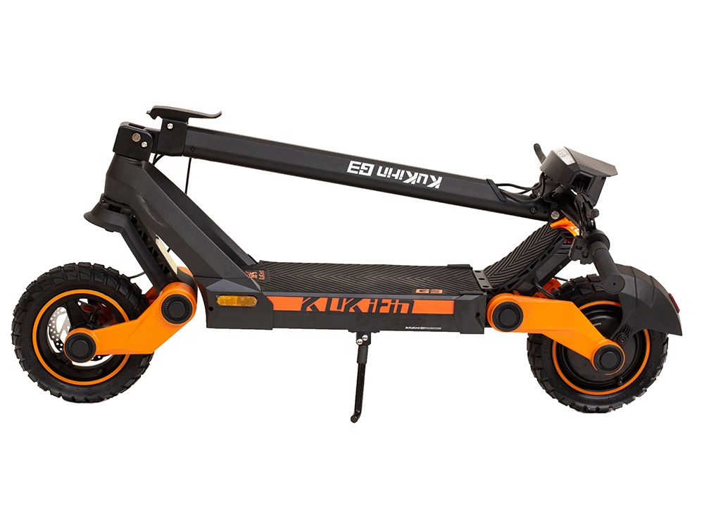 A KuKirin G3 elektromos roller sokoldalú jármű, amely alkalmas mindennapi ingázásra, városi használatra, valamint hétvégi terepezésre. 120 kg teherbírásának köszönhetően szélesebb felhasználói kör számára alkalmas, és masszív vázszerkezete hosszú távú megbízhatóságot garantál. 180 mm-es hasmagasság kényelmes utazást biztosít egyenetlen felületeken és járdaszegélyeken, míg a lépcsőfelület elegendő helyet biztosít stabil álláshoz. A roller a praktikumra is ki van tervezve – könnyen összecsukható, kompakt méretének köszönhetően egyszerűen szállítható autóban vagy tárolható otthon. Karbantartása minimális – ajánlott rendszeresen ellenőrizni a gumiabroncs nyomását, a fékek állapotát és az akkumulátort optimális töltöttségi szinten tartani. Az IPX4 védelem fröccsenő víz ellen véd, így a rollert enyhén kedvezőtlen időjárás mellett is biztonságosan használhatjuk, bár erős esőben nem ajánlott a vezetés.