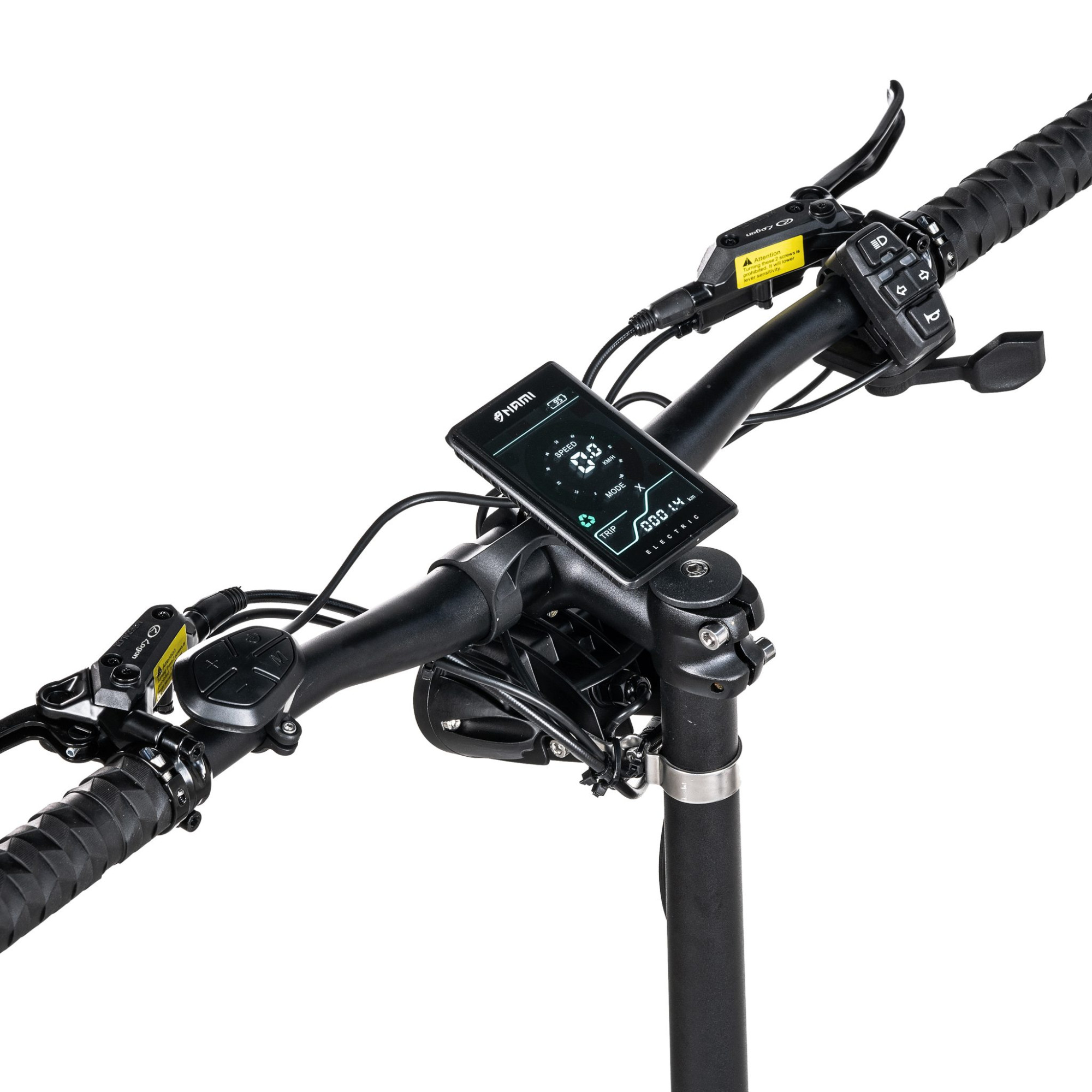 A NAMI Blast már első pillantásra lenyűgöz az elülső részével. Míg a legtöbb elektromos roller felfüggesztőkarjai csuklópántjukkal a roller teste felé fordulnak, Blast modelljéhez a NAMI szabadalmaztatott egy ezzel ellentétes felfüggesztési típust. Az eredmény egyenletesebb futás, és simább áthaladás a bukkanókon és a kátyúkon még nagy sebességnél is. A váz a Nami rollerek már bevált klasszikusa, első osztályú szilárdsággal, repülő-minőségű alumíniumból, matt fekete ipari dizájnnal. A Blast modellnél azonban a gyártó 270 mm-re csökkentette a roller hasmagasságát. Hogy miért? Mert így a széles futófelülettel és a megemelt hátsó résszel együtt mindig kiválóan reagálnak a kerekek és jobb lesz a stabilitás gyors kanyarodáskor. A szilárdság az erős összecsukó illesztésnél, de még a kormányrúdnál is dominál, amely tetején egy okos LCD kijelző található sokféle funkcióval, mint például az 5 vezetési mód, az egyes vezérlőegységek paramétereinek beállítása, a tempomat vagy a túlmelegedés elleni védelem. A roller IP65-ös vízállósággal is rendelkezik. Ahhoz, hogy a Nami Blastot gyorsan tudja vezetni, miközben határozottan az irányítása alatt tartja, csak meg kell ragadnia a széles kormányt, ahol a vezérlők, a hüvelykujj gázkar és a fékkarok elérhető közelségben vannak ujjainak.