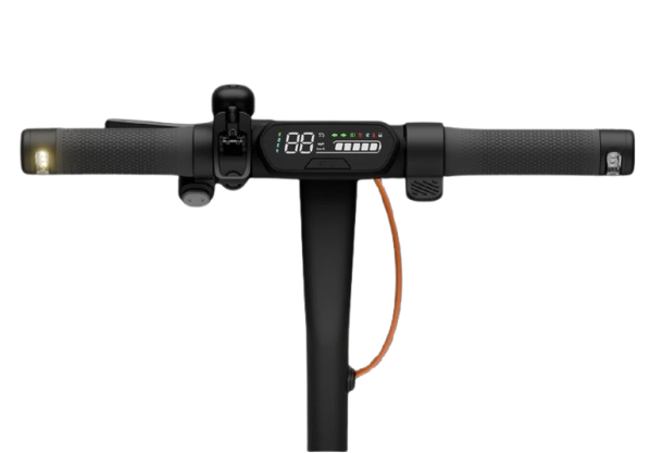 A Ninebot KickScooter E2 Plus E II dizájnja letisztult vonalakra épül, amelyeket masszív acélszerkezet egészít ki. Az alkalmazott autóipari SPFH590 anyag kiváló szilárdság–rugalmasság aránnyal rendelkezik, ami növeli a roller tartósságát a mindennapi igénybevétel során. Praktikus megoldás az egyszerű összecsukhatóság, amelynek köszönhetően a roller kompakt 1081 × 475 × 548 mm méretre hajtható össze, így könnyen kézben hordozható, autóban tárolható vagy íróasztal alá helyezhető. Kinyitott állapotban a méretei 1081 × 475 × 1177 mm, ami elegendő helyet és stabilitást biztosít menet közben. A kormányon egy jól áttekinthető 2,8"-os LED kijelző található, amely azonnal megjeleníti a sebességet, az üzemmódot, az akkumulátor állapotát és más fontos információkat. A nagyobb kényelem érdekében a Ninebot E2 Plus E II elülső rugós felfüggesztéssel van felszerelve, amelynek rugóútja körülbelül 27 mm, így csillapítja az útegyenetlenségekből származó rezgéseket és javítja az általános stabilitást. Nem hiányoznak az irányjelzők sem elöl és hátul, ami ebben az árkategóriában kifejezetten ritka. Az elülső világítás 2,1 W teljesítményű, és akár 13,5 m hatótávolságot biztosít, növelve a biztonságot szürkületben vagy éjszaka. A fékezésről elöl elektronikus, hátul mechanikus dobfék gondoskodik, amelyek együtt megbízható és egyenletes lassítást nyújtanak. A 8,1" méretű karbantartásmentes gumiabroncsok nagy tartósságot kínálnak, és megszüntetik a felfújással vagy defektekkel kapcsolatos gondokat. A modern funkciókat a Bluetooth-kapcsolat teszi teljessé a Segway-Ninebot alkalmazással, amely lehetővé teszi a roller zárolását, a firmware frissítését és az egyes komponensek állapotának ellenőrzését.